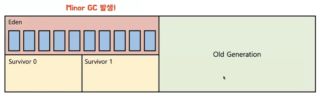 - Eden 공간 부족: JVM 메모리 구조에서 Young Generation 영역에 객체를 할당할 공간 부족한 경우