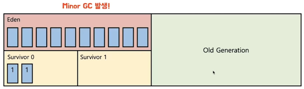 - 이 영역에서 객체가 사라질때 Minor GC가 발생한다고 말한다.