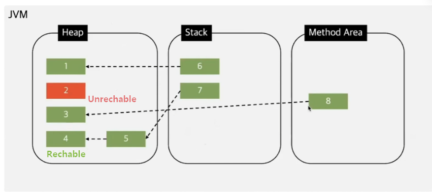 Heap에 생성되어 있는 객체가 제거되거나 null 할당, 메소드 종료(참조 범위 벗어남) 등 이벤트시 GC Root에서 도달할 수 없다고 간주하며 메모리 수거 대상이 된다.