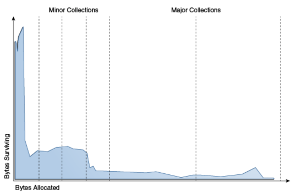 - 대부분의 객체들은 짧은 시간 동안만 살아 있고 금방 접근 불가능한 상태가 된다.