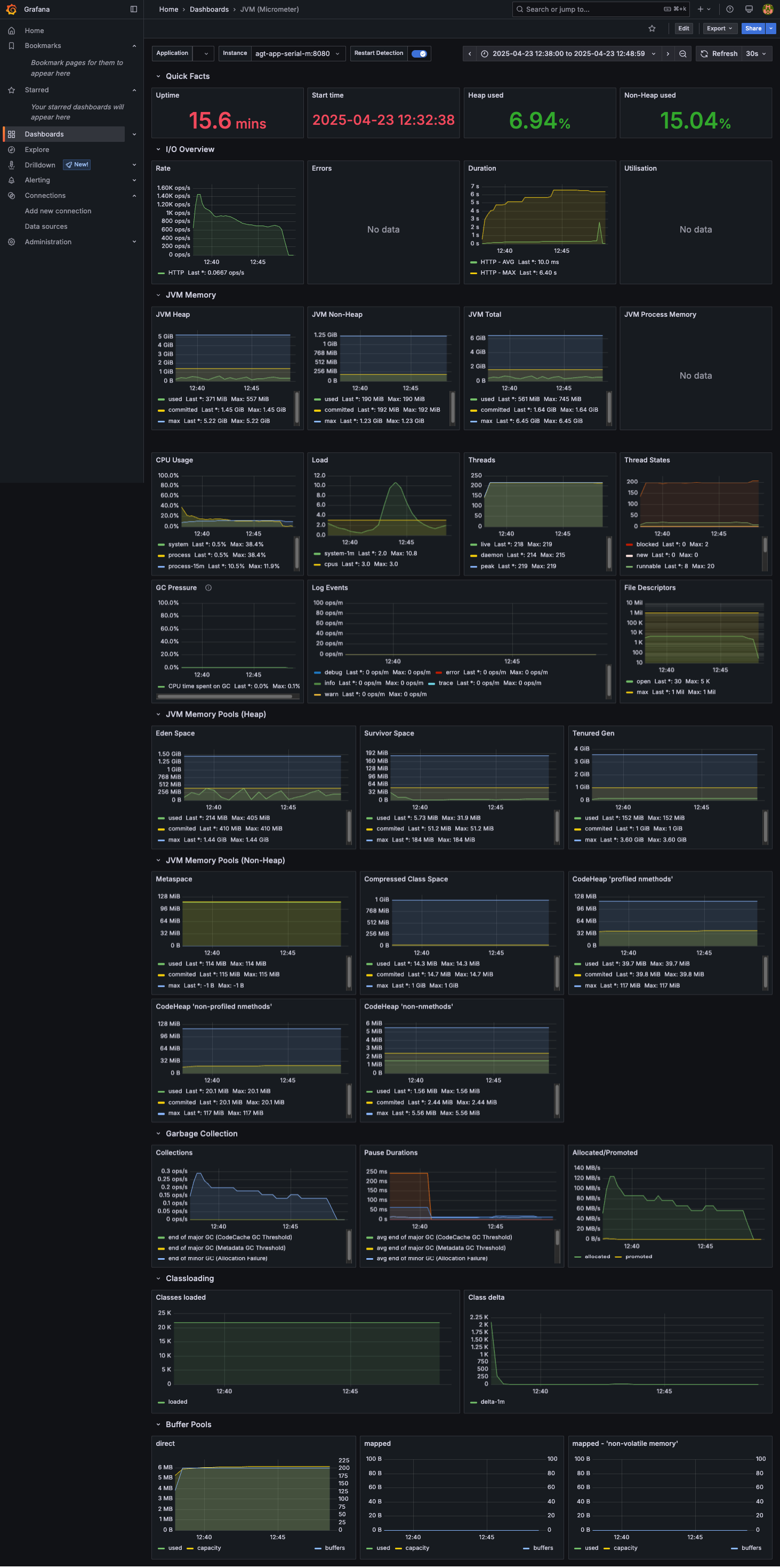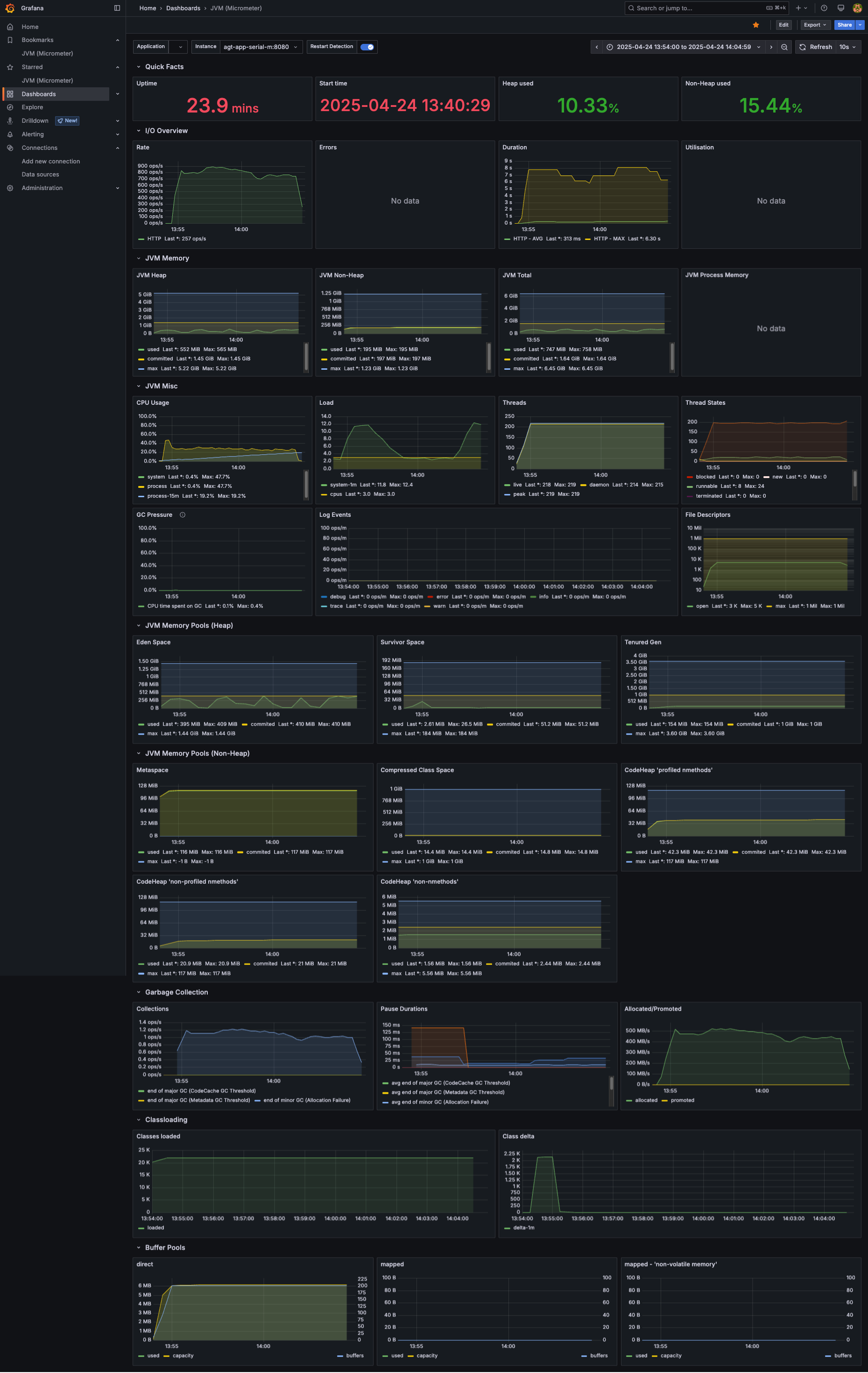 Serial GC는 부하테스트 시간이 점점 길어짐에 따라서 RPS, ART 지표가 계속해서 안좋은 결과를 보여주었다.