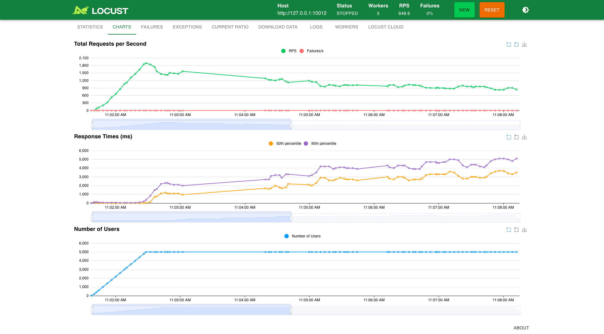 JVM Application을 3 코어로 실행했지만 RPS가 크게 변화가 없었다. 원인은 주요 테스트 로직들이 MySQL, Redis를 사용하는 로직이고 아마 Redis가 싱글 스레드로 동작하여 눈에 띄는 변화가 없지 않을까 싶다.